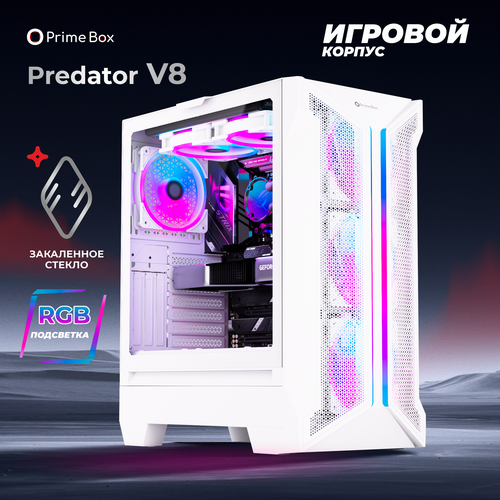 Корпус Prime Box PREDATOR V8 White + закаленное стекло + RGB подсветка, ATX