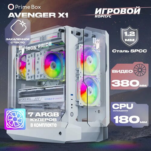 Игровой корпус для компьютера Prime Box AVENGER X1 White + 7 ARGB вентиляторов + закаленное стекло