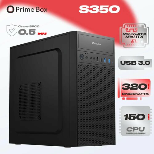 Корпус Prime Box S350 (2 - USB 2.0, 2 - USB 3.0, USB-C, 5.25", CardReader) Micro-ATX, Mini-ITX
