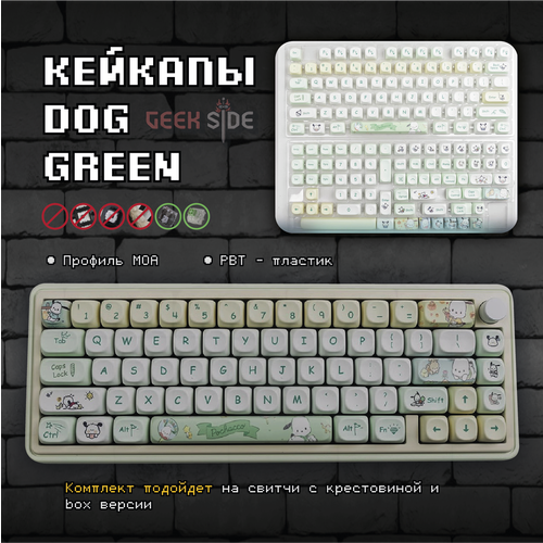 Кейкапы Dog Green MOA для механической клавиатуры, MOA профиль, ABC