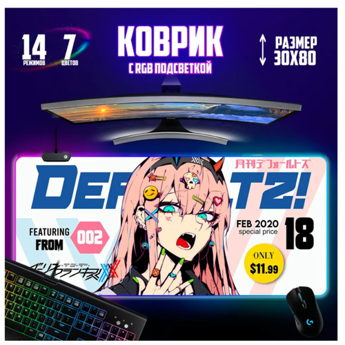 Игровой коврик для мыши с RGB подсветкой, водоотталкивающее покрытие, 800 х 300 х 4 мм, много режимов, коврик для клавиатуры и мыши, Zero Two