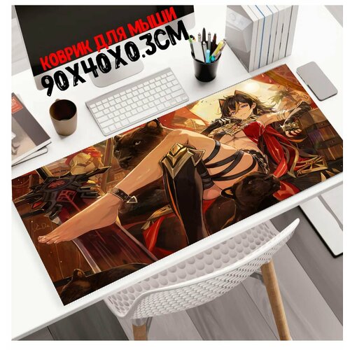 Коврик для мыши Genshin Impact, Дэхья 90x40x0,3 (124-Красный/Бежевый)