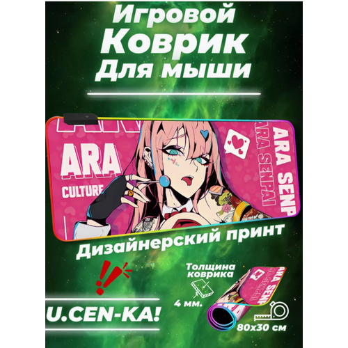 Игровой коврик для мыши с RGB подсветкой, водоотталкивающее покрытие, 800 х 300 х 4 мм, много режимов, коврик для клавиатуры и мыши, Zero Two розовый