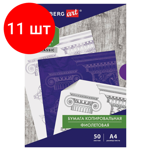 Комплект 11 шт, Бумага копировальная (копирка), фиолетовая, А4, 50 листов, BRAUBERG ART "CLASSIC", 112403
