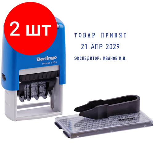 Комплект 2 шт, Датер самонаборный Berlingo "Printer 8755", пластик, 2стр. + дата 4мм, 1 касса, русский, блистер