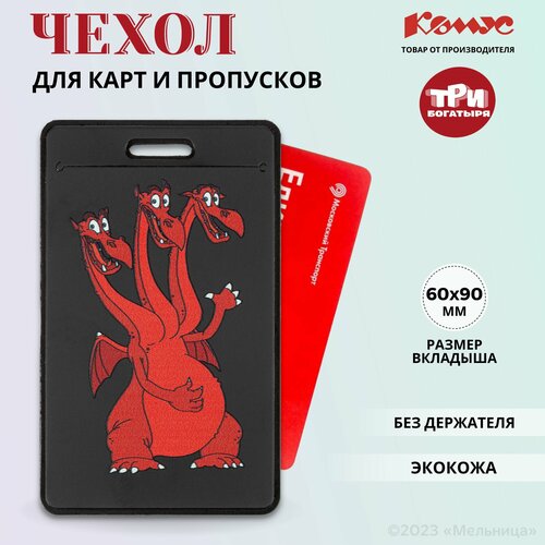 Бейдж Комус 104x63мм вертикальный Три богатыря Змей Горыныч экокожа, черный