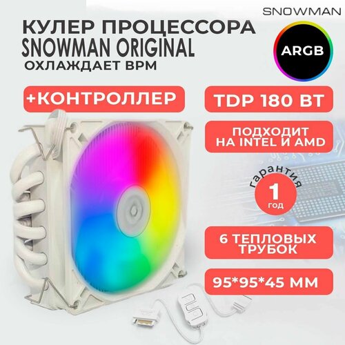 Кулер вентилятор башенный Snowman (Снеговик) M45-6 для процессора c АRGB подсветкой