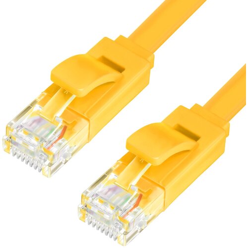 Greenconnect Патч-корд PROF плоский прямой 1.0m, UTP медь кат.6, желтый, позолоченные контакты, 30 AWG, ethernet high speed 10 Гбит/с, RJ45, T568B GC