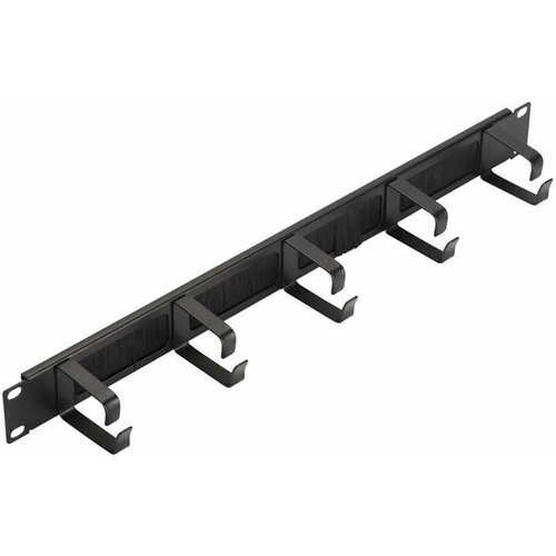 Кабельный органайзер 19" c щеточным вводом с 5 металлическими кольцами, 1U