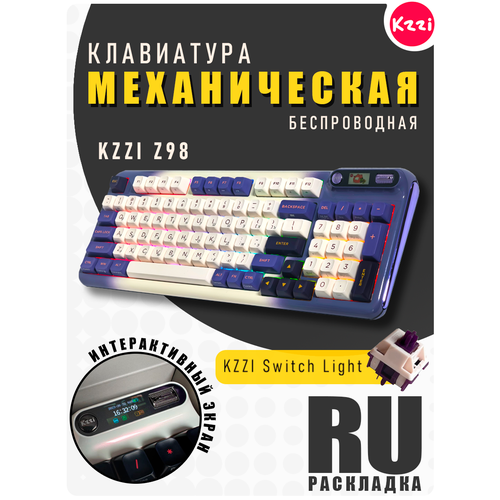 Ослепительная беспроводная механическая клавиатура Kzzi Z98, трехрежимная: проводная + 2.4G + BT, дисплей, Русская раскладка, фиолетовый