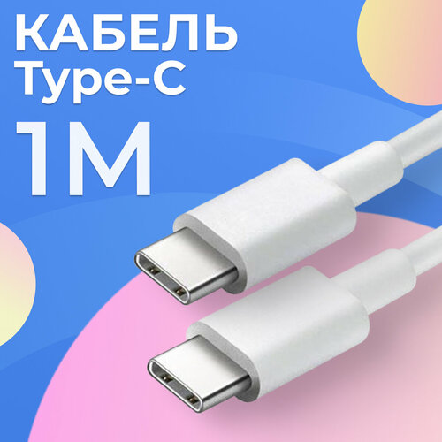 Кабель Type-C / Type-C для зарядки мобильных устройств / 1 метр / Провод для телефона, планшета, наушников / Шнур с разъемом Тайп Си-Тайп Си / Белый