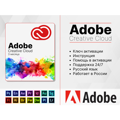 ADOBE CREATIVE CLOUD 3 месяца (Электронный ключ, Работает в России, активация на новом аккаунте, Русский язык)