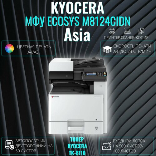 МФУ лазерное Kyocera ECOSYS M8124cidn цветная печать А3 (1102P43AX0). Азиатская версия. Тонер TK-8110.