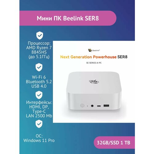 Мини-ПК SER8 AMD Ryzen 7 8845HS 32 ГБ ОЗУ 1 ТБ SSD W11
