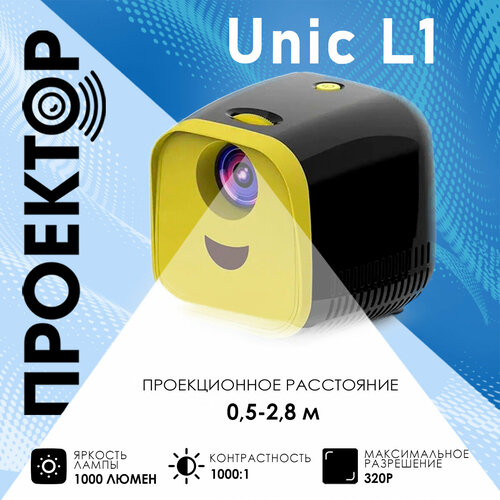 Проектор мультимедийный Unic L1 / Портативный светодиодный видеопроектор 320p LED 1000 Lm / Домашний кинопроектор для фильмов и дома