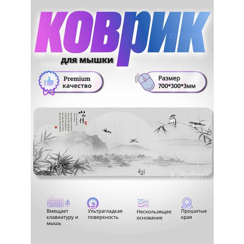 Коврик для мышки большой в японском стиле 700 х 300 птичка