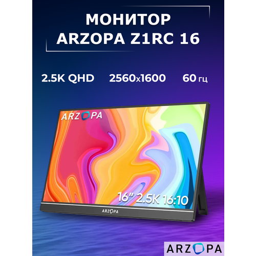 Монитор для ПК ARZOPA Z1RC1, 16 дюймов, 60ГЦ, IPS, портативный монитор для ноутбука с динамиками