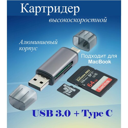 Картридер micro SD USB Type-C, переходник для карт памяти Micro SD / SD для компьютера, ноутбука