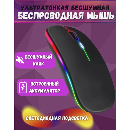 Мышь беспроводная для компьютера и ноутбука с подсветкой бесшумная (черная)