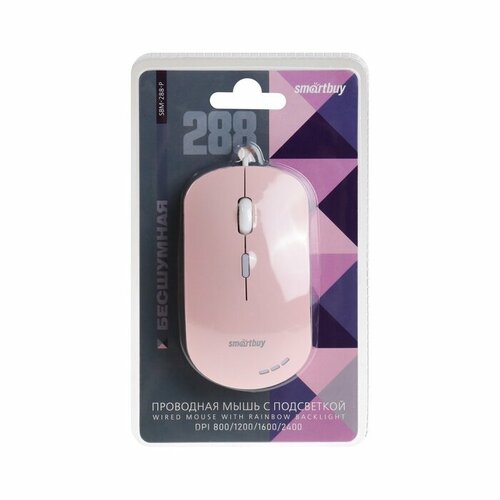 Мышь Smartbuy 288, игровая, проводная, оптическая, беззвучная, подсветка,2400 dpi, USB, розовая (комплект из 3 шт)