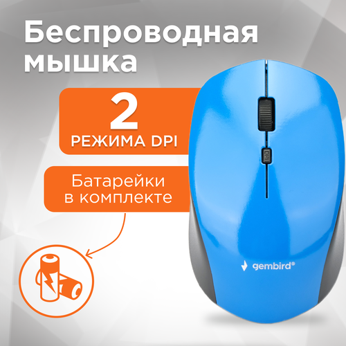 Мышь беспров. Gembird MUSW-250-2, 2.4ГГц, 3 кнопки + колесо кнопка,1600DPI синий
