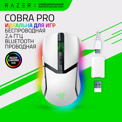 Игровая мышь Razer Cobra Pro (White) 30.000dpi, 2.4ГГц, Bluetooth, USB, до 170ч работы, RGB подсветка