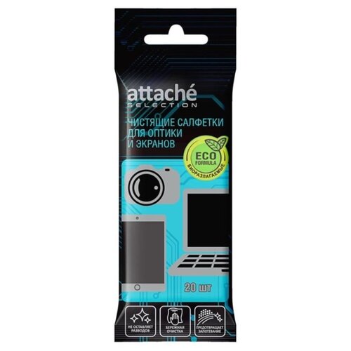 Салфетки влажные для чистки оптики и экранов Attache Selection (20 штук в упаковке)
