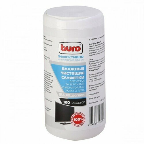 Салфетки Buro BU-Ascreen для экранов мониторов/плазменных/ЖК телевизоров/ноутбуков туба 100шт влажных