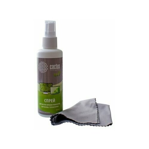 Чистящий набор Cactus 180 мл, 1 шт для экранов и оптики, средство для экрана компьютеров и мониторов, тряпка в комплекте