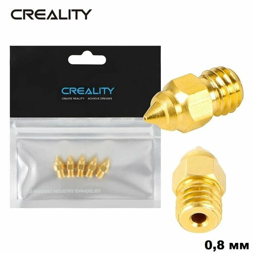 Набор сопел Creality 5шт, латунь - 0,8 мм, MK8 / MK7. Сопло латунное для 3D принтера, 5 штук.