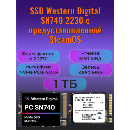 SSD диск 1 ТБ Western Digital SN740 2230 PCIe 4.0 NVME для Steam Deck, Asus rog Ally, Surface laptop