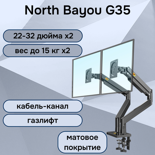 Двойной настольный кронштейн NB North Bayou G35 для мониторов 22-32" до 15 кг, матовый черный