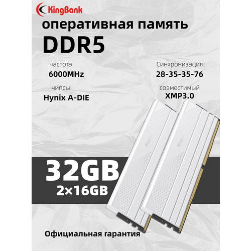 Kingbank Оперативная память White Star Blade DDR5 UDIMM 6000MHz 2*16GB White Heatsink DRAM (Hynix A-die C28)