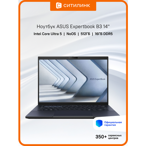 14" Ноутбук Asus Expertbook B3404CMA-Q50430, IPS, Intel Core Ultra 5, 16ГБ, SSD 512ГБ, Intel Graphics, чёрный