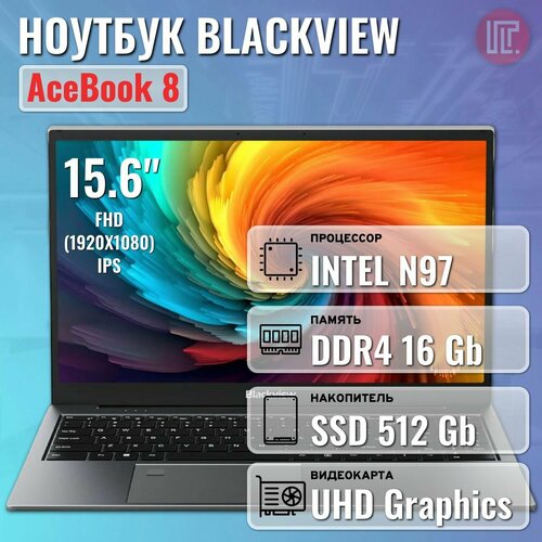 Ноутбук BLACKVIEW AceBook 8 N97/16GB/512GB SSD/15.6" FHD IPS/FP/Win11 Grey