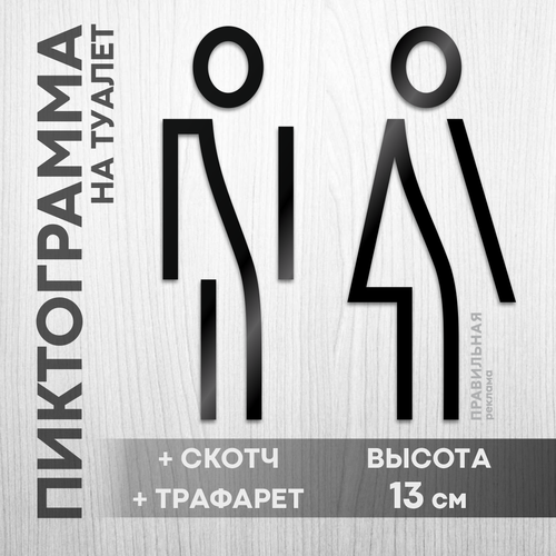 Табличка на туалет / Пиктограмма на туалет (черный акрил 3 мм. + скотч + трафарет). Минималистичная.