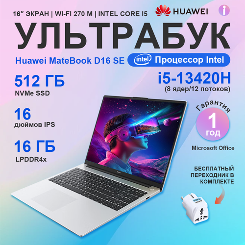 Ноутбук Huawei MateBook D16SE, 16 дюймов, i5-13420H 16GB,/512GB, Английская/Русская клавиатура
