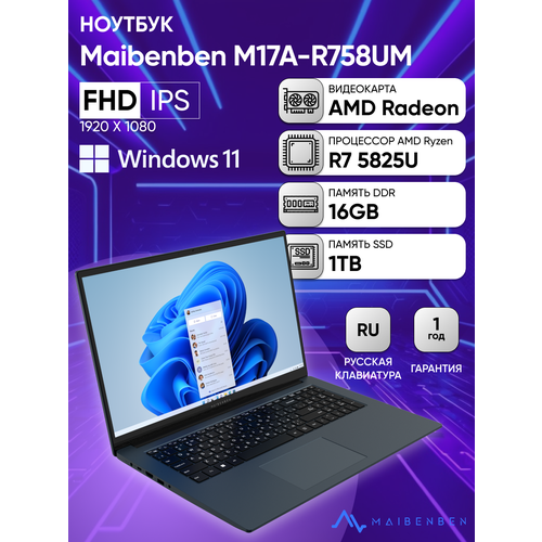 Ноутбук Maibenben Medio M17A-R758UM 17,3" FHD IPS/R7-5825U/16Gb/1Tb SSD/UMA/Mouse+Pad/W11/Blue