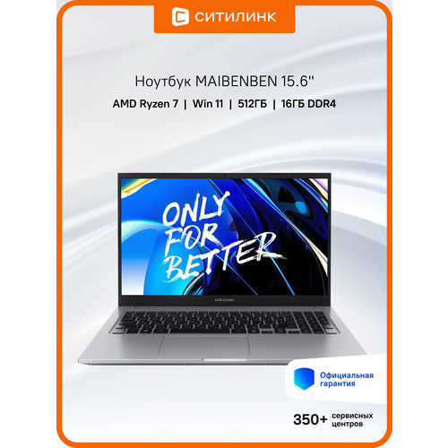 Ноутбук MAIBENBEN M557 15.6", IPS, AMD Ryzen 7 5825U 2ГГц, 8-ядерный, 16ГБ DDR4, 512ГБ SSD, AMD Radeon, Windows 11 Home, [m5571sf0hsre1]