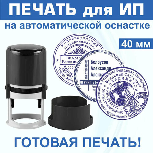 Печать индивидуального предпринимателя/автоматическая оснастка/диаметр 40 мм/Печать ИП по вашим данным