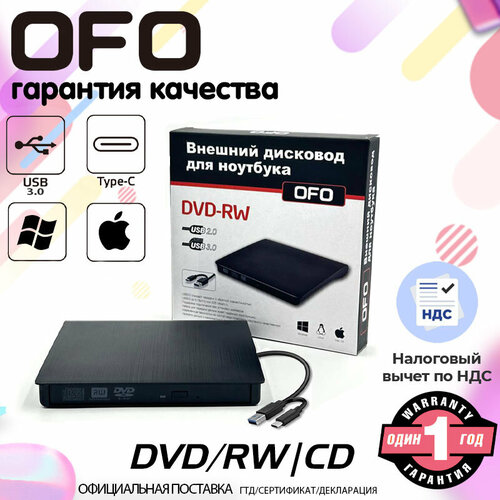 Внешний дисковод для ноутбука (оптический привод) CD / DVD - USB 3.0 , Type-C / для компьютера