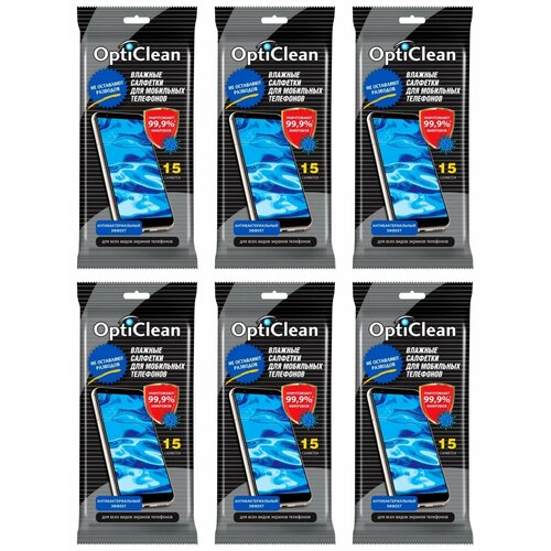 Opti Clean Влажные салфетки для мобильных телефонов, 15 шт/уп, 6 уп