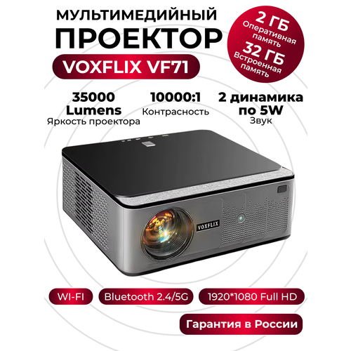 Проектор для фильмов VOXFLIX VF71 яркий домашний проектор для фильмов, мультиков трансляций с Full HD и Android 11