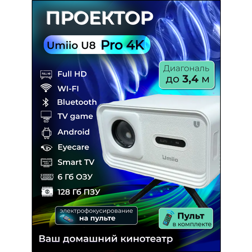 Мини проектор домашний кинотеатр Android Wi-Fi Full HD HDMI Umiio U8 Pro 4K