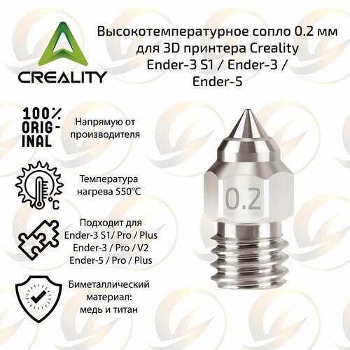 Оригинальное высокотемпературное сопло 0.2 мм для 3D принтера Creality Ender-3 S1 / Ender-3