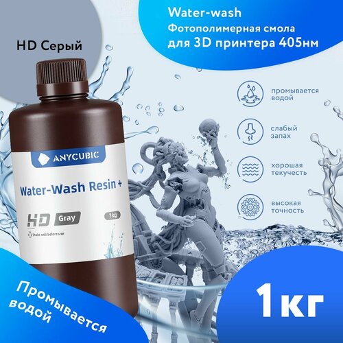 Фотополимерная смола водосмываемая для 3d принтера Anycubic Water Wash UV Resin 365-405 nm 1 л. Серый HD