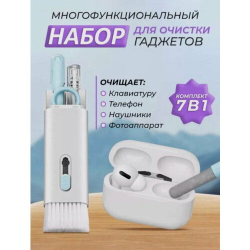 Щетка для клавиатуры и наушников 7 в 1, многофункциональный набор для чистки гаджетов Голубая