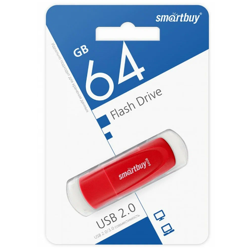 Память Smart Buy "Scout" 64GB, USB 2.0 Flash Drive, красный