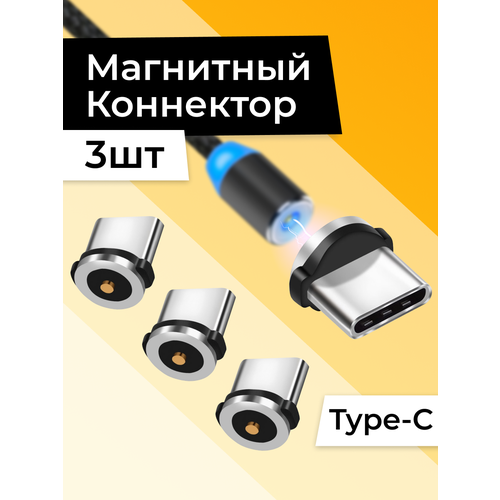 Комплект 3 шт. Магнитный коннектор Type-C для кабеля / Переходник USB Type-C на кабель для телефона / Черный