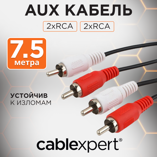 Кабель Cablexpert 2xRCA - 2xRCA (CCA-2R2R), длина 7.5 м, 1 шт., черный